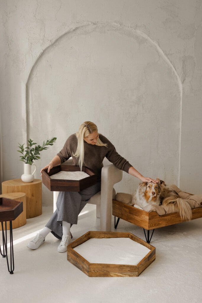 Kol kiti rytą pradeda scrollindami naujienas, mes – pasidėję puodelį kavos ant pjuvenų žvelgiam į lentas. Mūsų dirbtuvės įsikūrusios gamtos glėbyje, kur net varnėnas sveikinasi garsiau už signalizaciją. Ir nors kartais pasimetam tarp ruošinių ir varžtų, bet visada prisimenam, kad kuriam ne daiktą, o namų kampelį mylimam augintiniui.